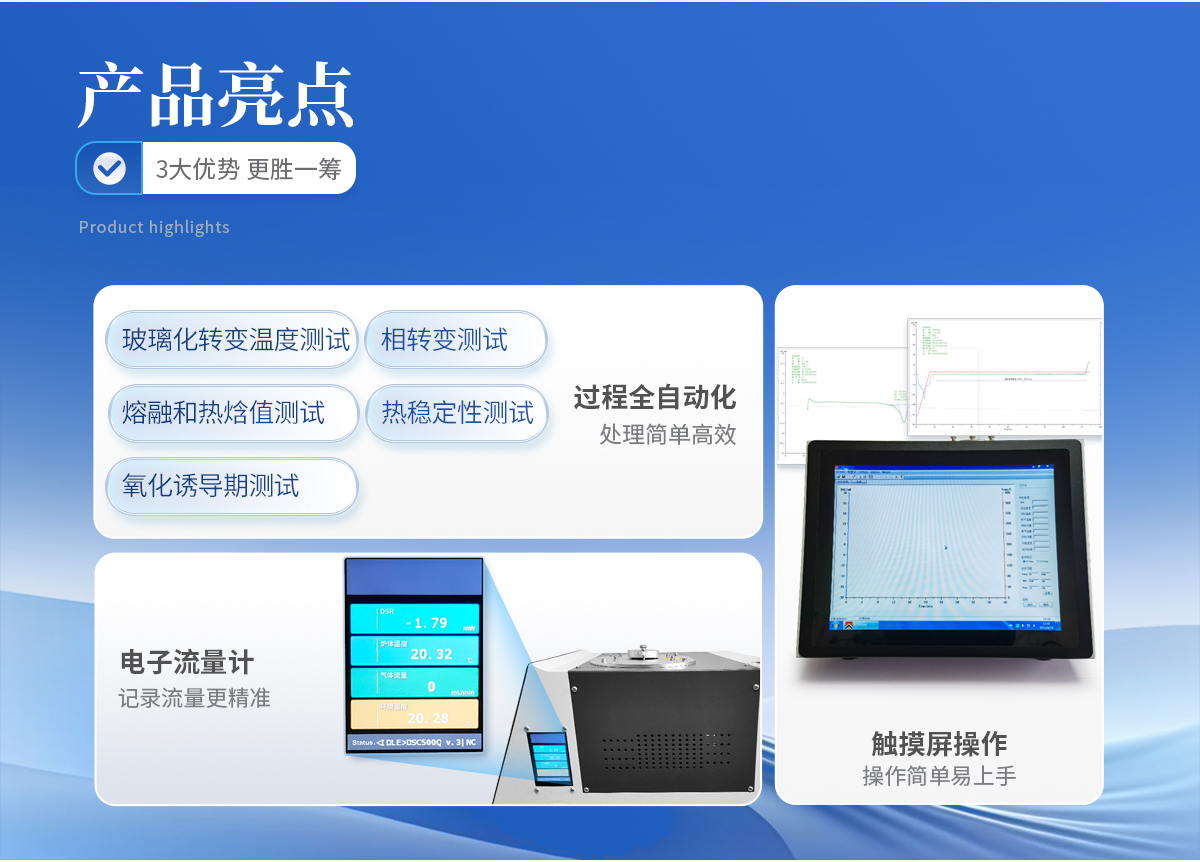 該差示掃描量熱儀為觸摸屏式,主要針對塑料行業訂制,可測各種塑料的熔融、塊狀、顆粒、薄膜、管道、套管等氧化誘導期的測試。