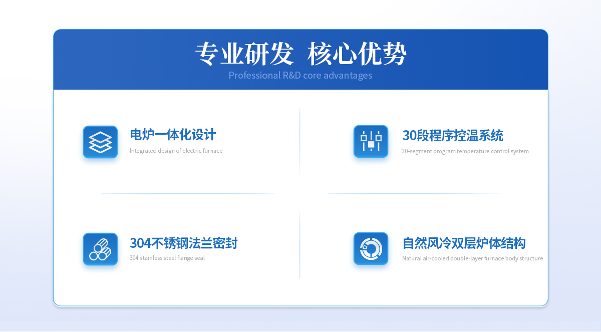 | 1、爐膛采用優(yōu)質(zhì)氧化鋁纖維材料,保溫性能好,耐用,拉伸強(qiáng)度高,無雜球,純度高,節(jié)能效果明顯; | 2、加熱元件采用優(yōu)質(zhì)HRE電阻絲,大大提高了其使用壽命; | 3、超溫報警,漏電保護(hù),操作安全可靠。 |