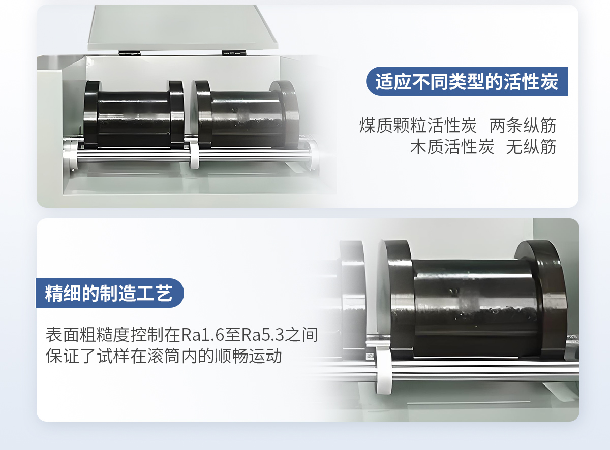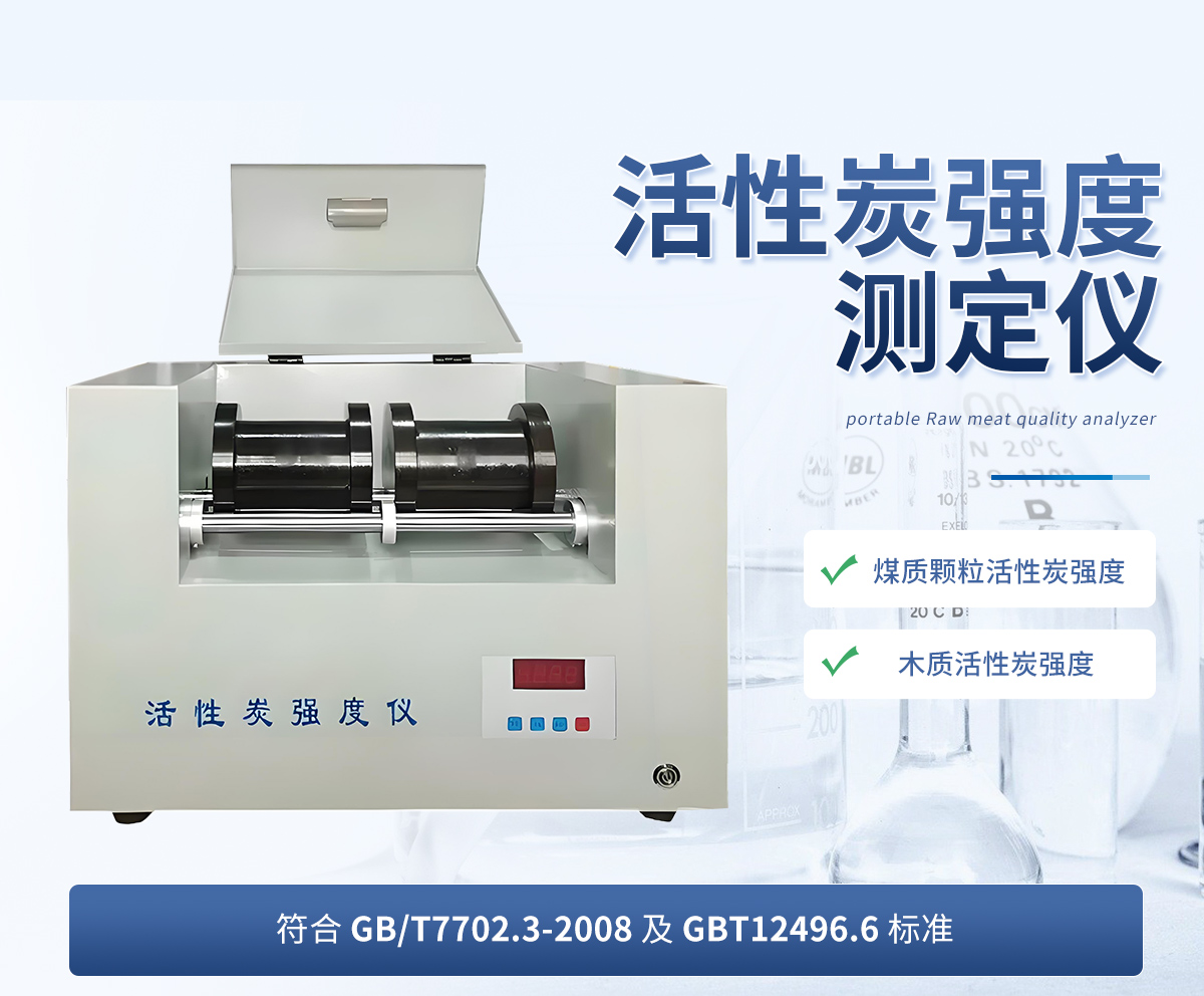 活性炭強(qiáng)度測(cè)定儀儀按照規(guī)定的試驗(yàn)條件,將活性炭試料置于裝有鋼球的滾筒中,開啟強(qiáng)度測(cè)定儀,開始計(jì)時(shí),通過(guò)滾筒的機(jī)械運(yùn)動(dòng),試料被磨損,測(cè)定被破壞試料粒度的變化情況,用保留在試驗(yàn)篩上的試料質(zhì)量占原試料的質(zhì)量分?jǐn)?shù),可求出活性炭試樣的強(qiáng)度。
