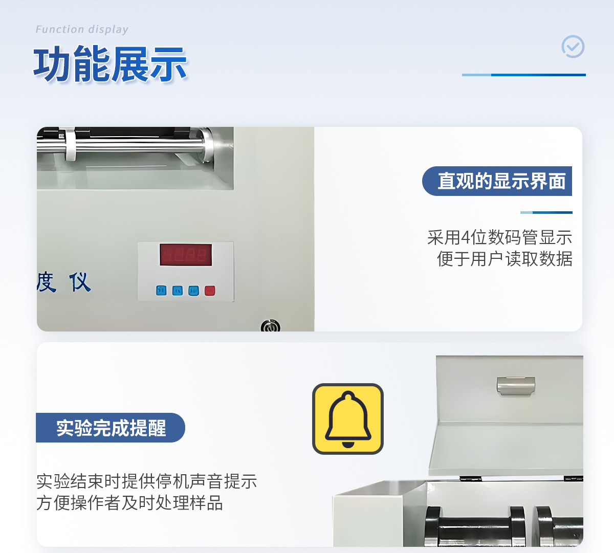 4、實(shí)驗(yàn)結(jié)束提示:停機(jī)聲音提示