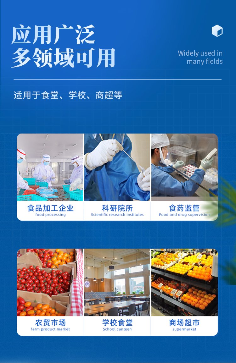 山東云唐智能科技有限公司生產(chǎn)的農(nóng)藥殘留檢測儀廣泛應(yīng)用于主要用于蔬菜、水果、茶葉、糧食、農(nóng)副產(chǎn)品等食品中農(nóng)藥殘留的快速檢測,依據(jù)國標(biāo)GB/T5009.199-2003進(jìn)行檢測,適用于果蔬茶生產(chǎn)基地以及農(nóng)貿(mào)批發(fā)銷售市場現(xiàn)場檢測,餐館、學(xué)校、食堂、家庭果蔬加工前的安全速測等。