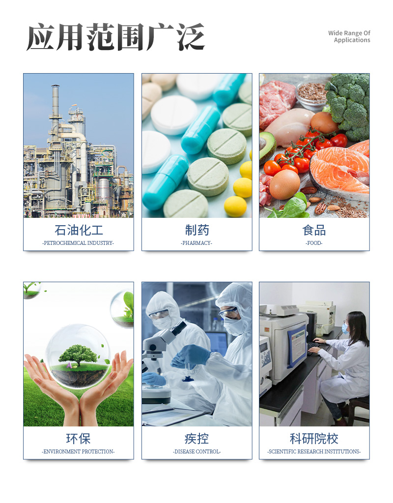 ● 儀器特別適用于各類企業、技術監督局、環境監測、衛生防疫、大學院校、科學研究等部門。