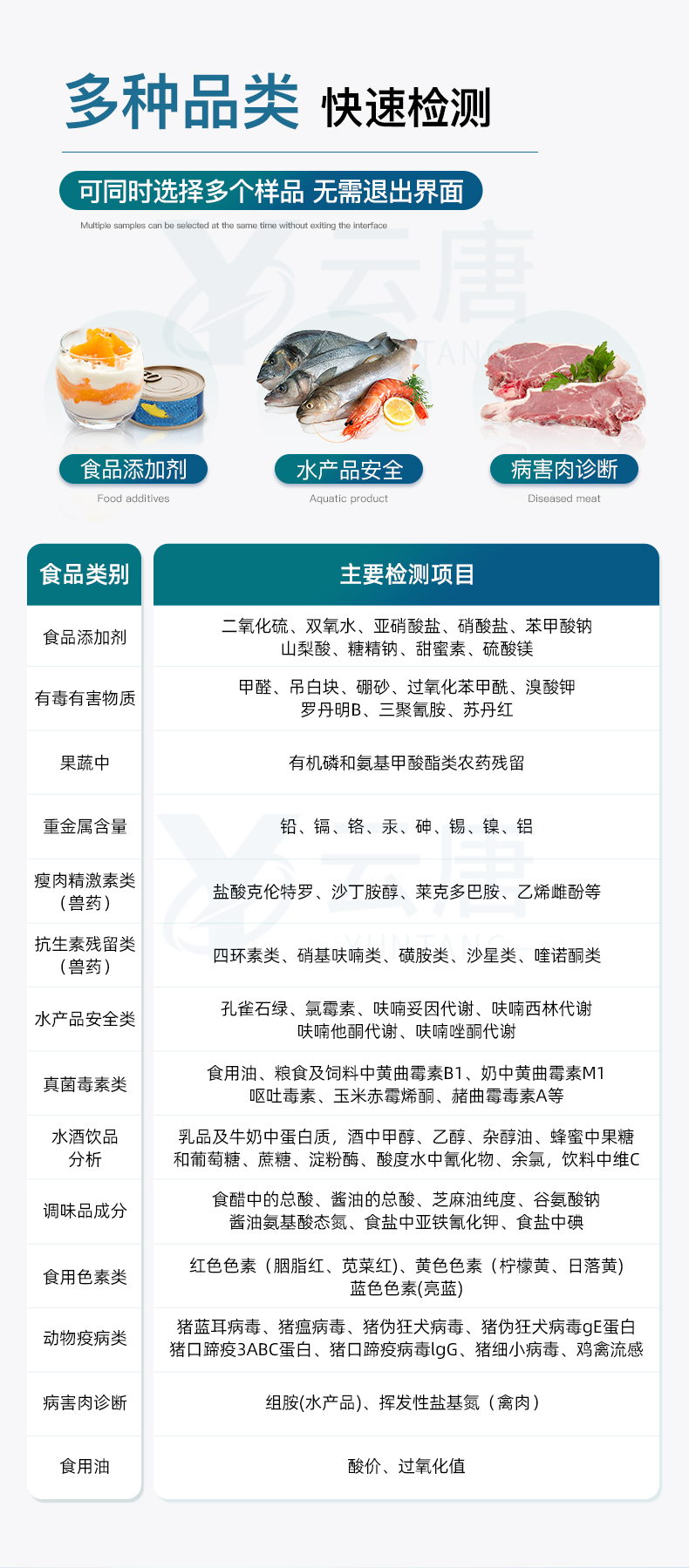 1、儀器采用臺(tái)式一體化系統(tǒng)檢測(cè)技術(shù),將分光光度模塊、膠體金檢測(cè)模塊、新型農(nóng)殘檢測(cè)模塊、數(shù)字化管理模塊、無(wú)線通訊模塊高度集成于一體,支持檢測(cè)200種食品安全檢測(cè)項(xiàng)目,同時(shí)預(yù)留升級(jí)檢測(cè)方法。
