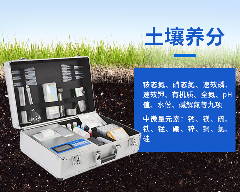 土壤養分:● 銨態氮、速效磷、速效鉀、水份、有機質、酸堿度、以及鈣、鎂、硫、硼、氯、硅等各種中微量元素;