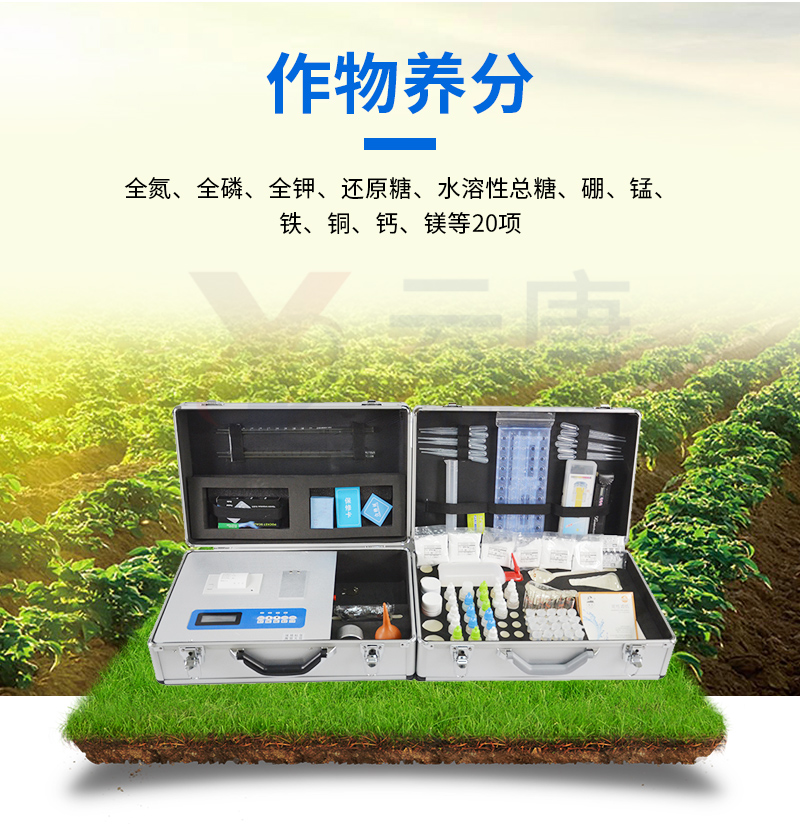 配套齊全:該儀器集藥、器、儀為一體,攜帶方便,相當于一個小型實驗室。適于農業服務部門或農資經銷商、肥料廠商測土施肥和鑒別肥料真假。