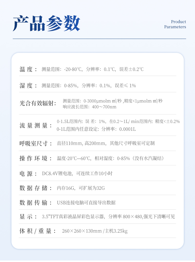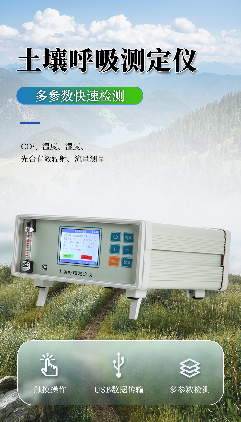 土壤呼吸是土壤生態系統碳素循環的一個重要過程,是土壤碳素同化異化平衡作用的結果,也是碳素由陸地生態系統返回大氣的主要途徑,是土壤中生命活動的表征,準確測定其釋放量是評價生態系統中生物學過程的關鍵;通過對土壤呼吸及其相關參數的監測,可估測根系和土壤微生物對氣候變化的響應。土壤CO2通量在時間和空間上受多種復雜物理和生物過程影響,長期、連續、準確的測量土壤碳通量,對陸地生態系統碳通量研究具有重要的意義。土壤呼吸測定儀可以同時顯示呼吸室內部的CO2濃度、溫度和濕度變化以及外部光合有效輻射強度。廣泛應用于農業生態科研、碳源碳匯研究、全球氣候變化、土地利用方式改變、生態修復研究、土壤微生物活力評估、植物生態研究、昆蟲呼吸、根系呼吸以及水果貯藏。